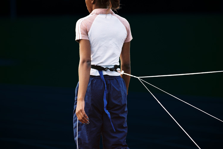Atalante, héroïne grecque célèbre pour sa leste foulée, avait juré de n’épouser que celui qui la vaincrait à la course. Une jeune athlète rejoue sur le stade antique de Delphes l’entraînement au sprint qu’elle pratique habituellement sur les stades de région parisienne. |