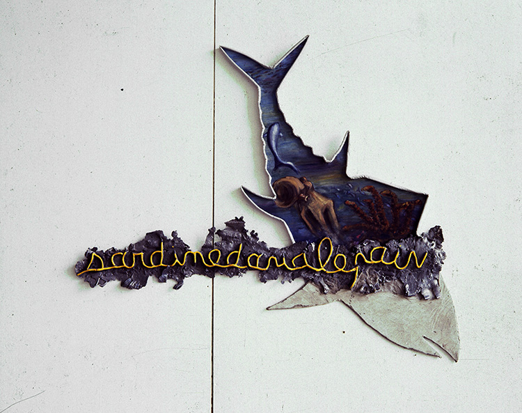 Bois, ciment, bouée, acrylique, 120x50x50cm