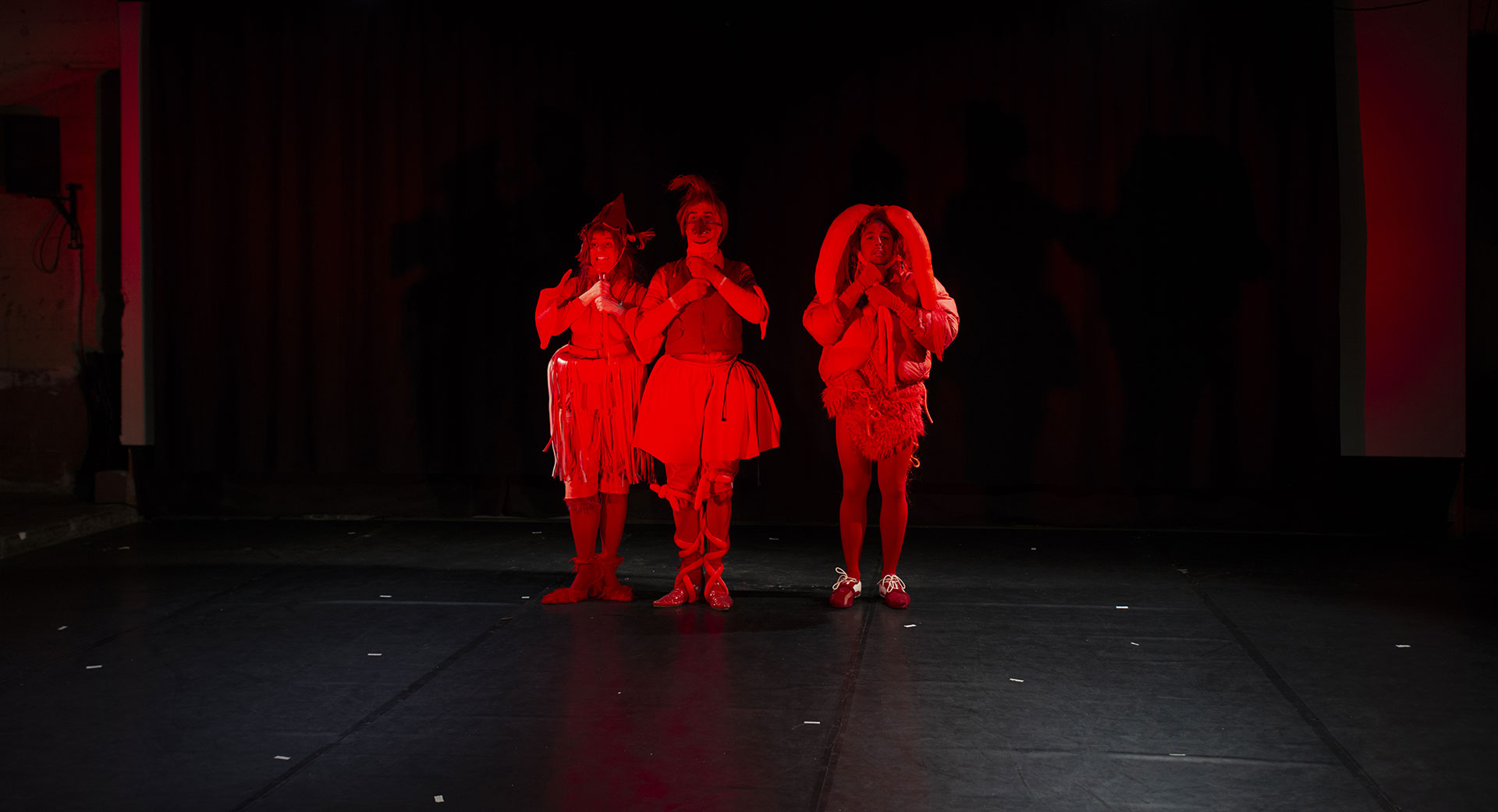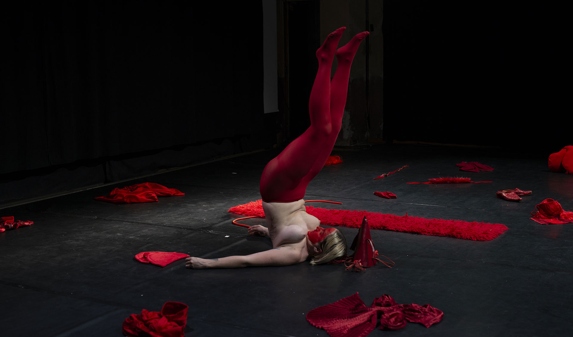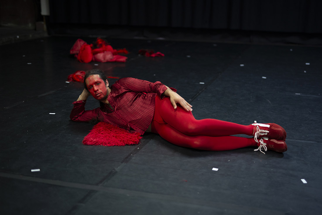| Le costume y est envisagé comme une partition chorégraphique, dans sa capacité à proposer une manière renouvelée de se déplacer, de s’exprimer, de performer. Des silhouettes se construisent et se déconstruisent, laissant apparaître sous nos yeux des créatures en constante métamorphose, jusqu’au monstrueux. |