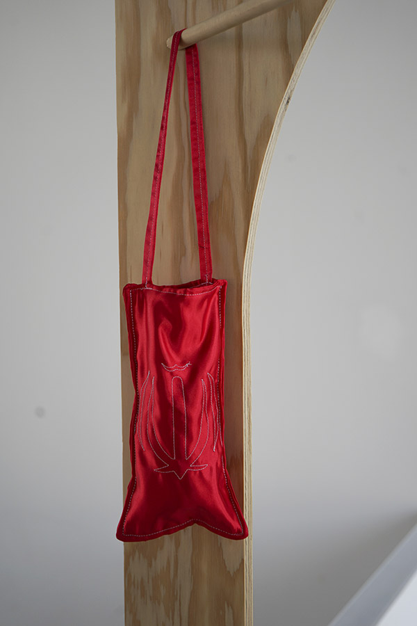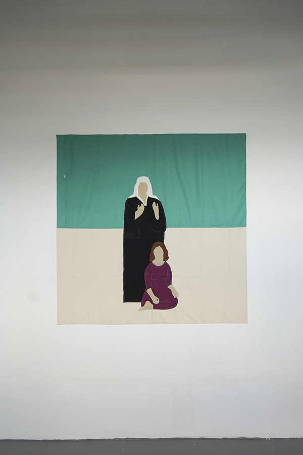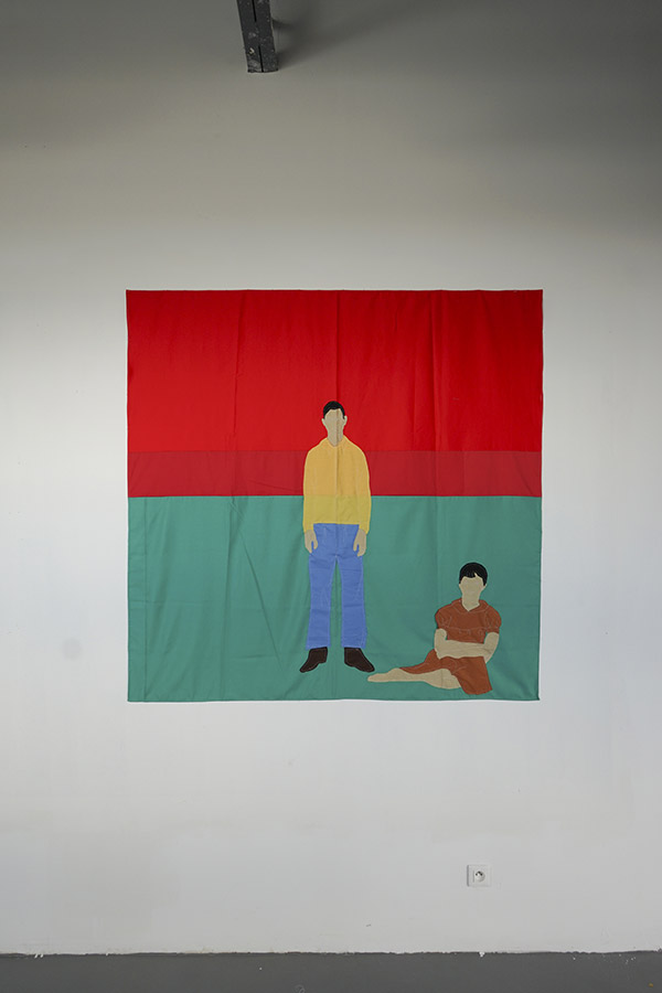 | Chacune de ces voûtes abrite, sur sa face extérieure, un feutre de laine. Ce feutre a été conçu à partir d’images d’archives représentant le père de l’artiste durant son enfance en Iran, peu avant son départ pour la France, puis plus tard, une fois installé. À ces images s’ajoute une pochette brodée renfermant une enceinte discrète, d’où s’échappe un témoignage audio : la voix du père y raconte sa vie avant l’exil, son intégration, puis sa désintégration progressive en terre étrangère. |