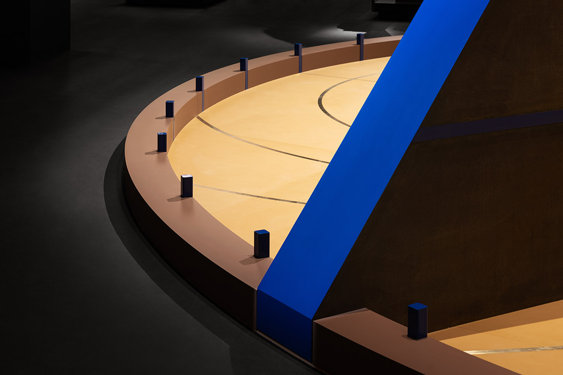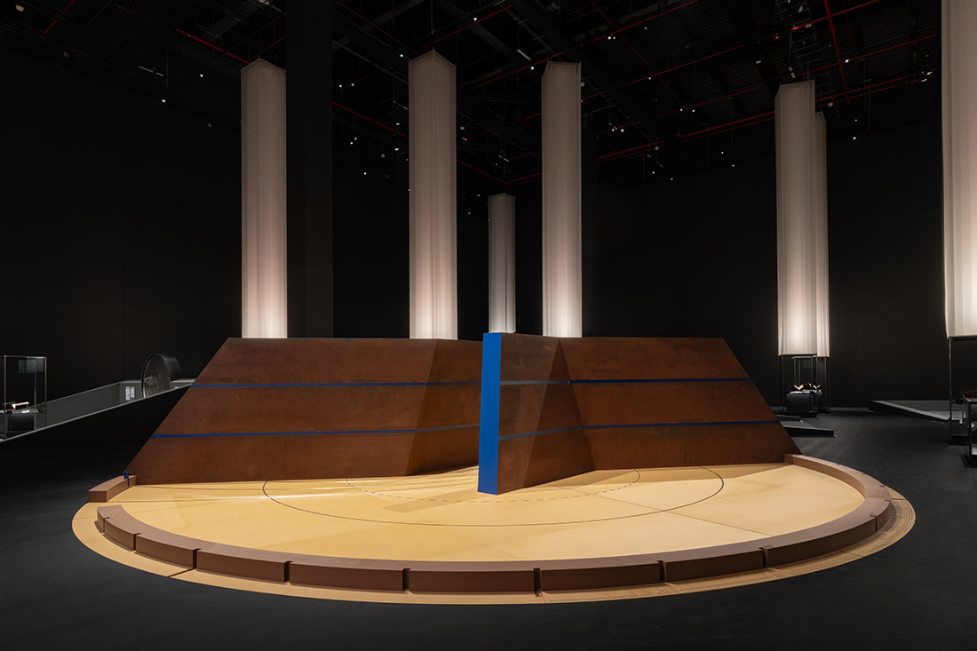 Leur écartement permet aux visiteurs de rentrer à l’intérieur du dispositif et d’expérimenter physiquement la notion d’espace et l’orientation. |