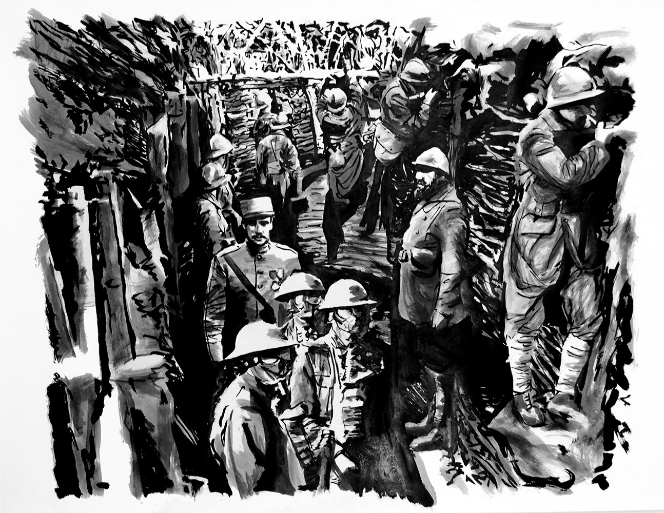 Encre et crayon sur papier, 50x65cm, 2024 |