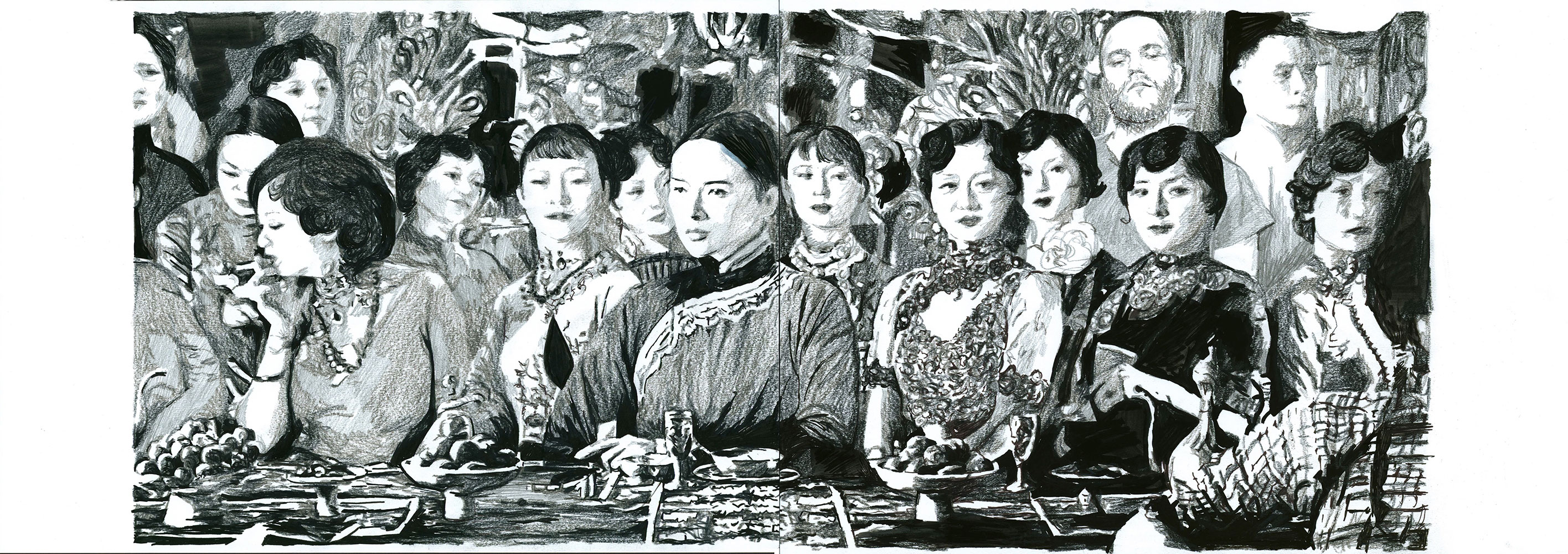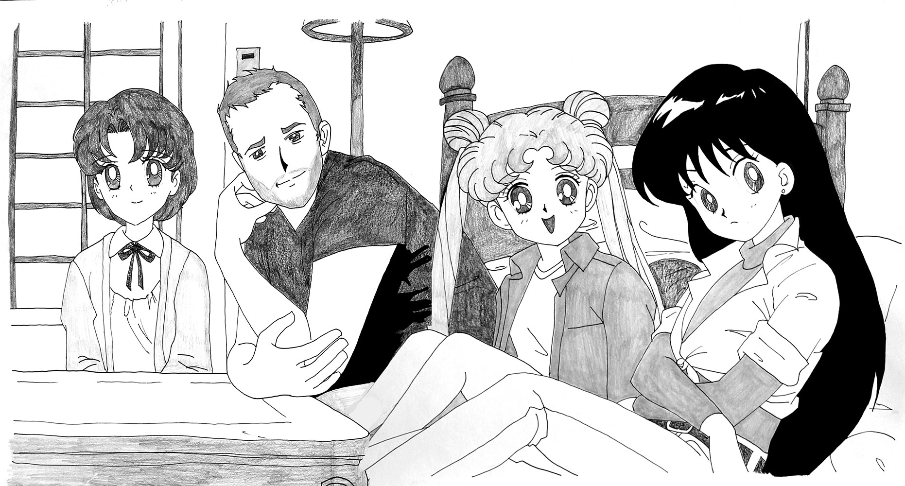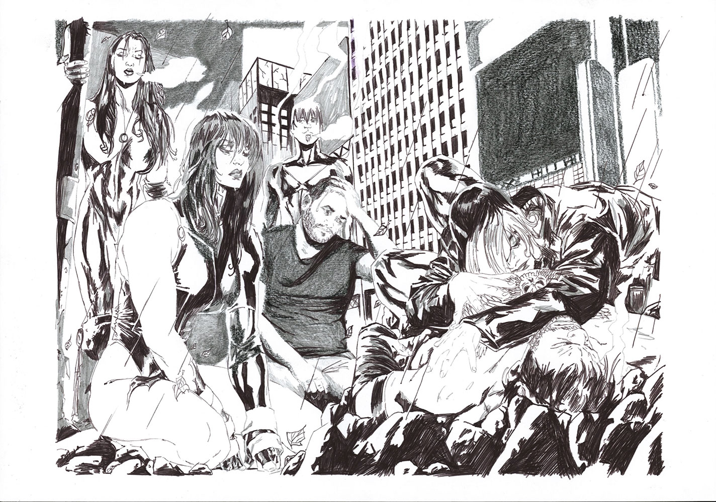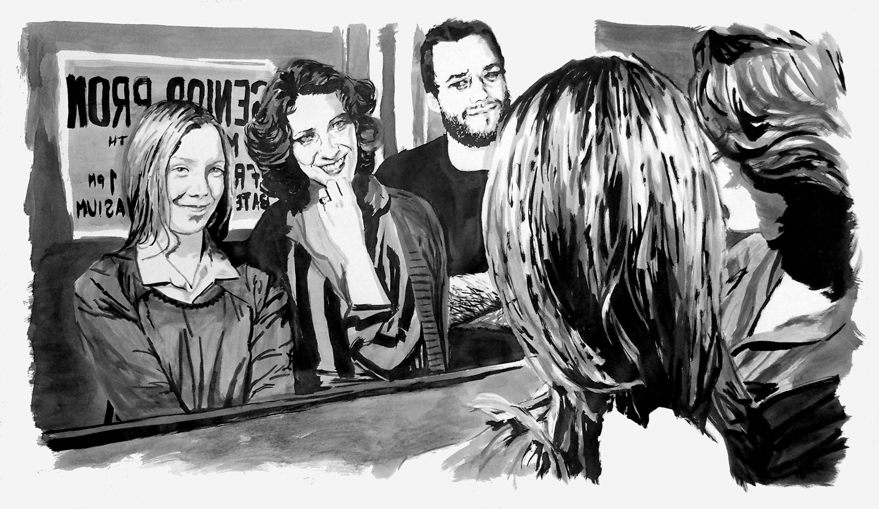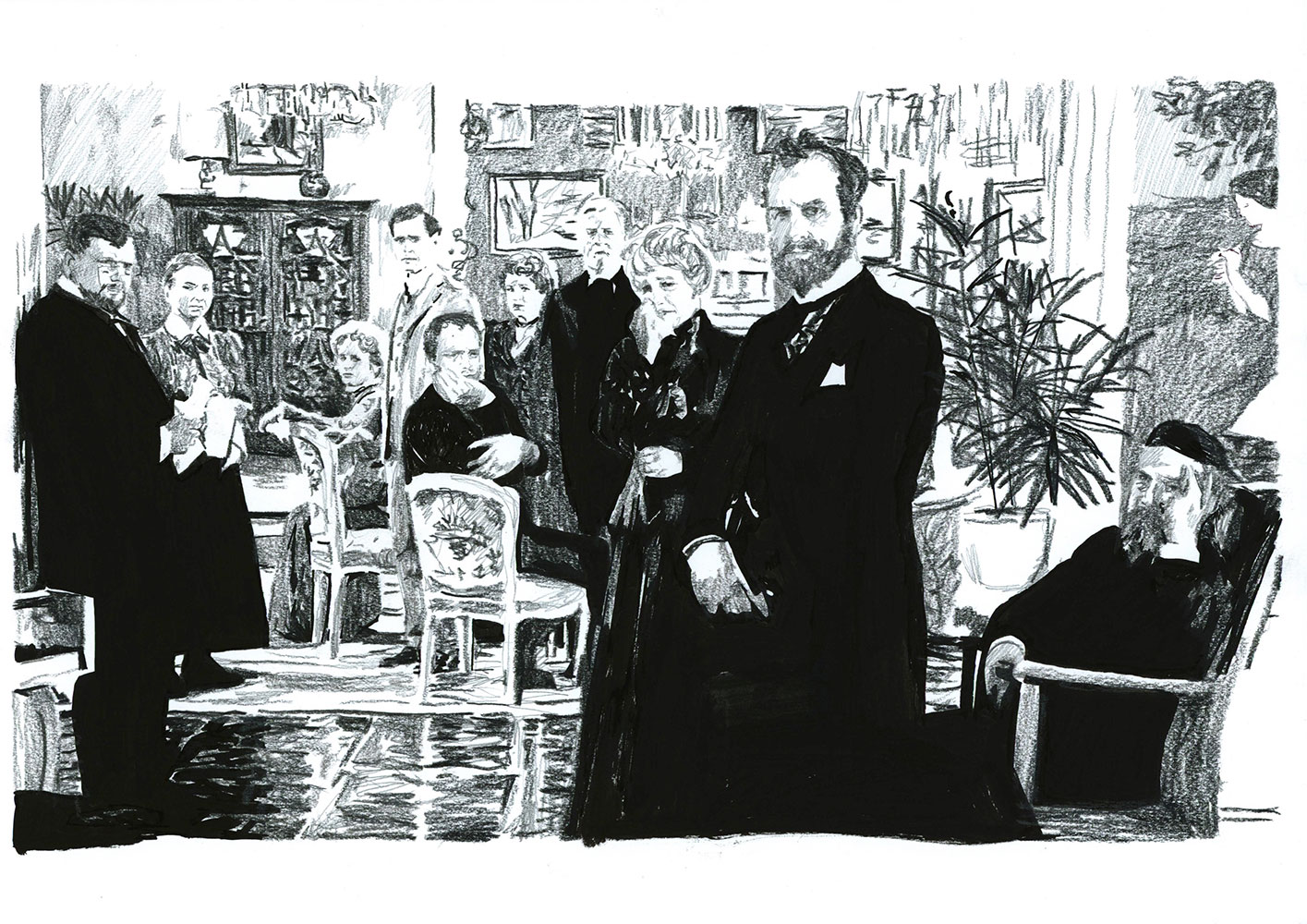 Le jeu peut s’étendre à la reconnaissance de cette figure récurrente que ma présence induit : quel est le statut de ce “type” présent dans toutes ces images de fictions sans grand lien entre elles ? Dès lors, ma fonction au sein de chaque dessin, en tant que “personne/personnage”, peut très bien être abordée comme une représentation archétypale capable de fonctionner au sein de tous genres et époques ou encore comme un individu lambda dont on interroge le processus d’identification. Je peux, dès lors, potentiellement servir de réceptacle à la projection du spectateur, invitant à une certaine mise en abîme : une projection dans une projection.