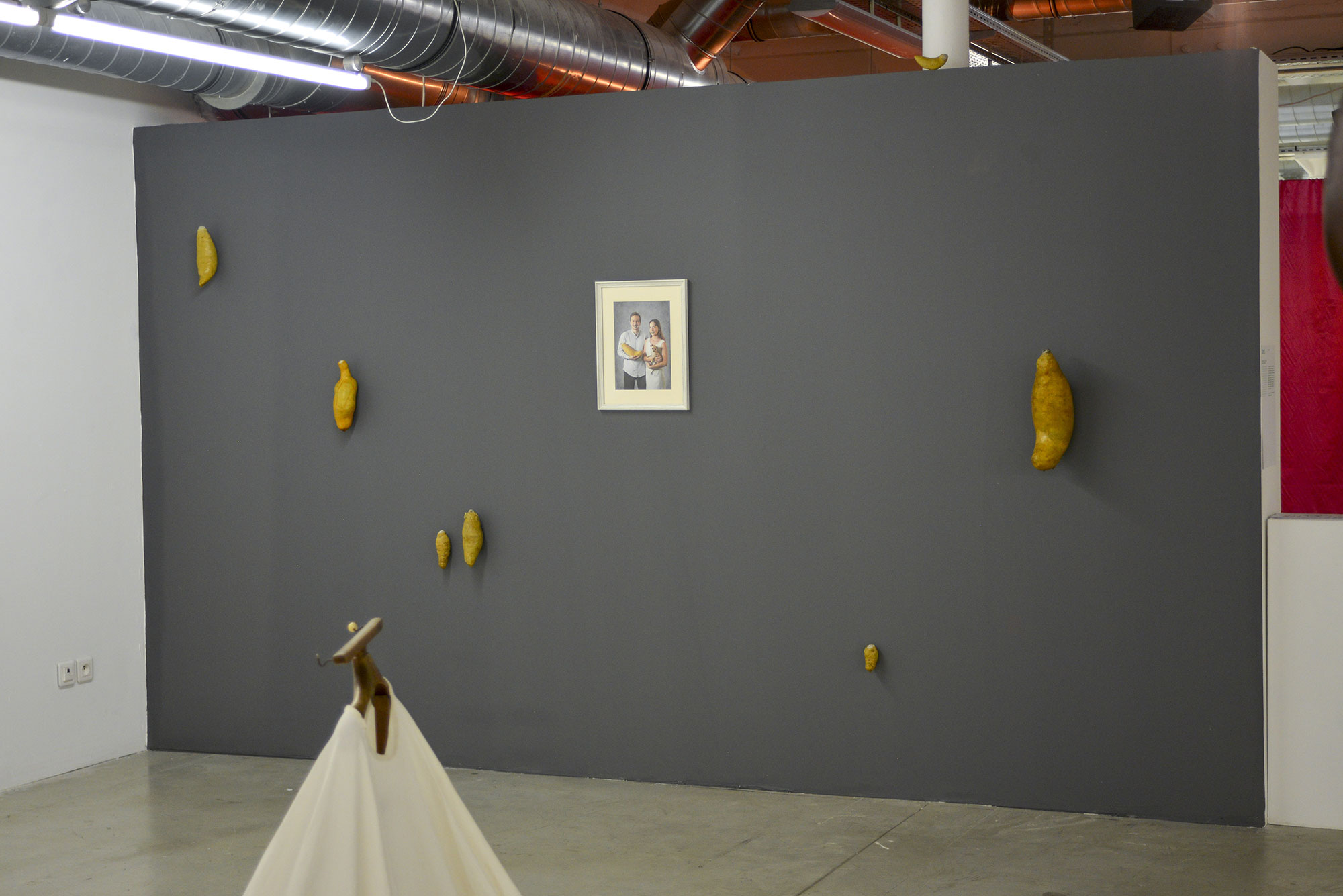 Plâtre, ciment, latex, vis, cadre en plastique, impression photo,