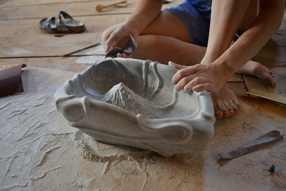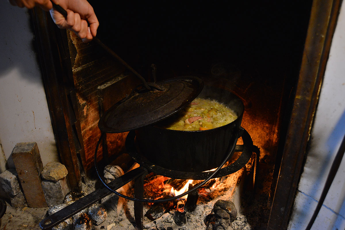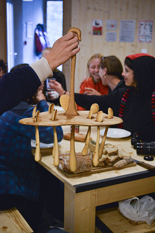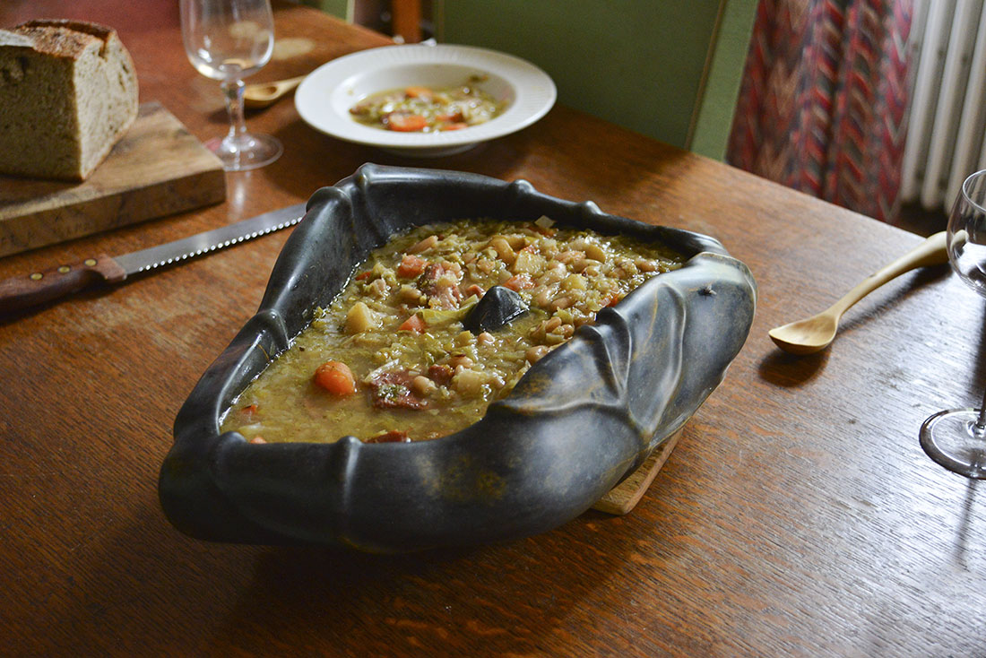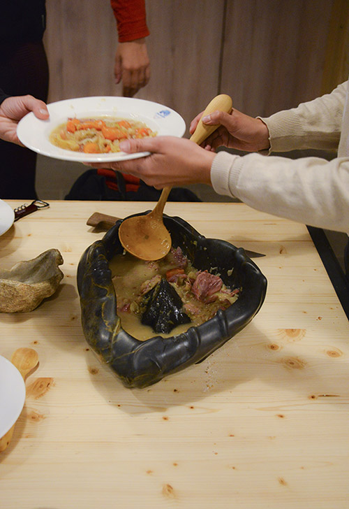 Après avoir gravi la montagne les participant.es sont conviées à partager une bonne soupe servie dans une soupière en pierre.