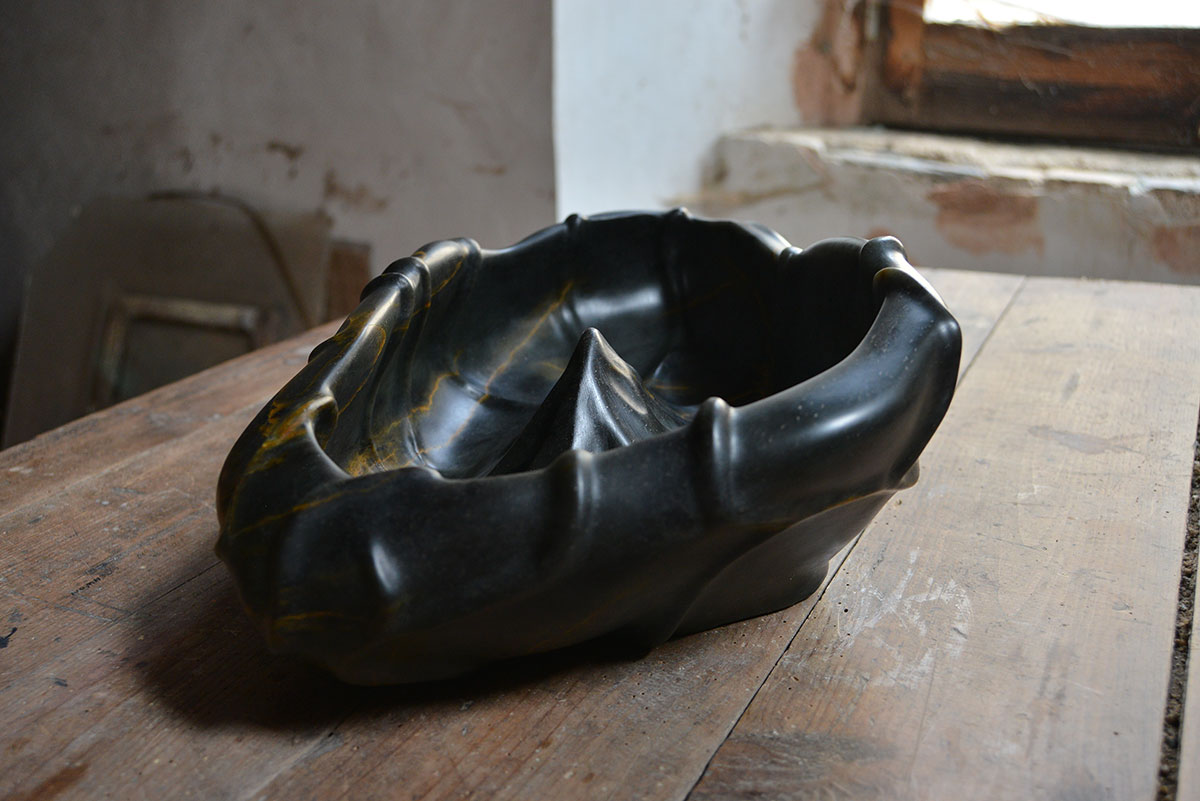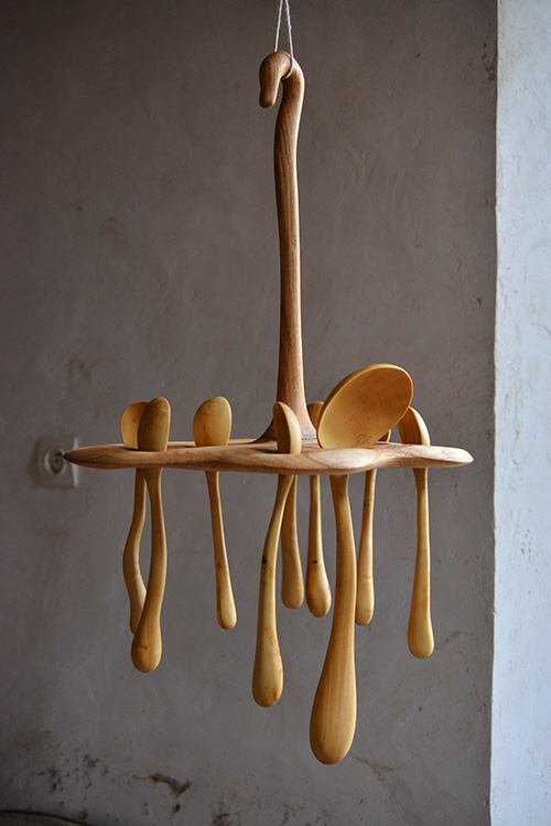 La marmite semble entièrement contractée pour irriguer la montagne en son cœur. Au fur et à mesure que la soupe est engloutie, les cuillères creusent la vallée et le mont émerge. Il est la trace de ce qui reste, de ce qui ne finit pas dans le ventre mais témoigne du moment partagé. Casser la croûte est une invitation à souper et à éprouver la montagne.