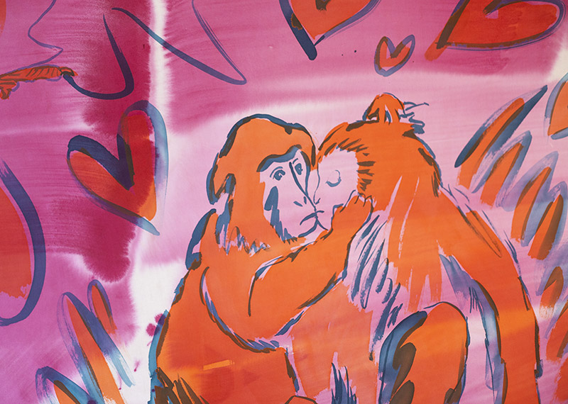 Cutting and composing, bringing the bits and pieces together in a new order. Lately the painted fabric even turns into dresses and therefore returns to the body.…here, your body when wearing them and the body of the painted figure on the surface.