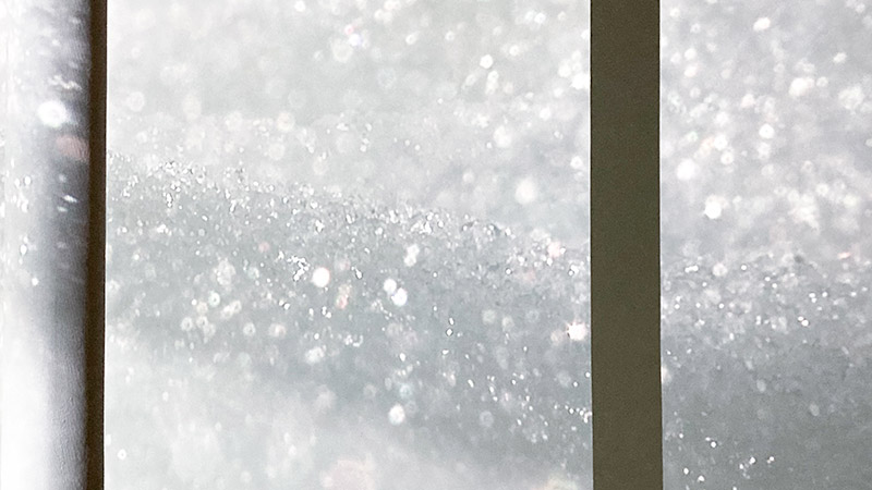 Matière, forme, sensations, luminosité, jeux d’échelles sont parfaitement équilibrés – L’alchimie du phénomène atmosphérique est un acte de sorcellerie magnifié par chaque « chose » qui s’offre à être recouverte.
