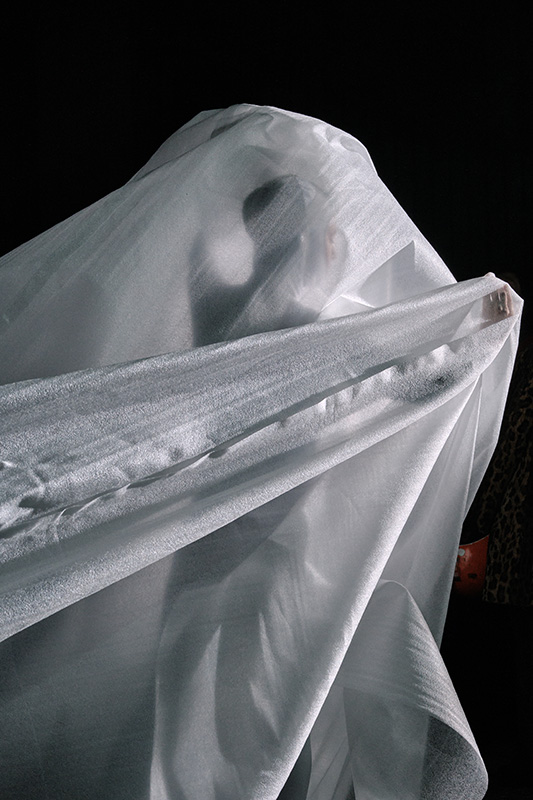 Cette œuvre déploie une recherche plastique et poétique autour du flou et de la transparence. Elle explore la mobilité des corps en résonance avec les espaces que nous traversons et qui nous traversent.