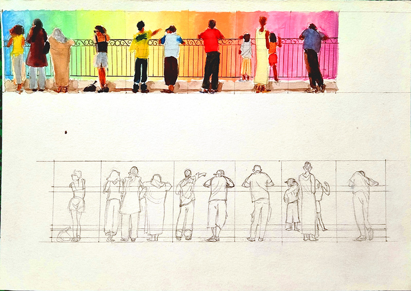 Huile sur toile, 195 x 860 cm (7 éléments de formats différents)