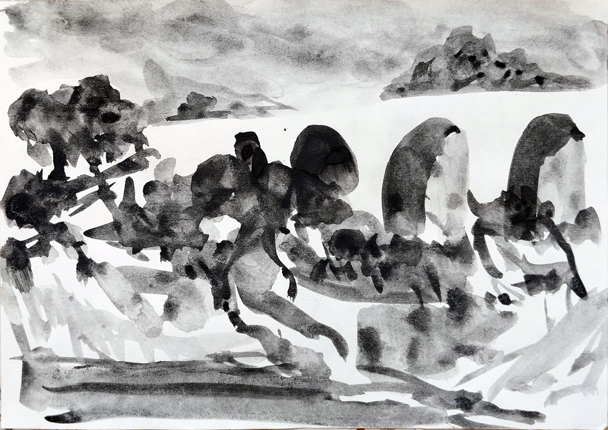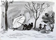 Gouache sur papier, 14,8 x 21 (19,5) cm |