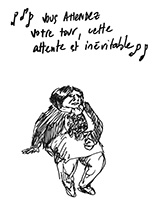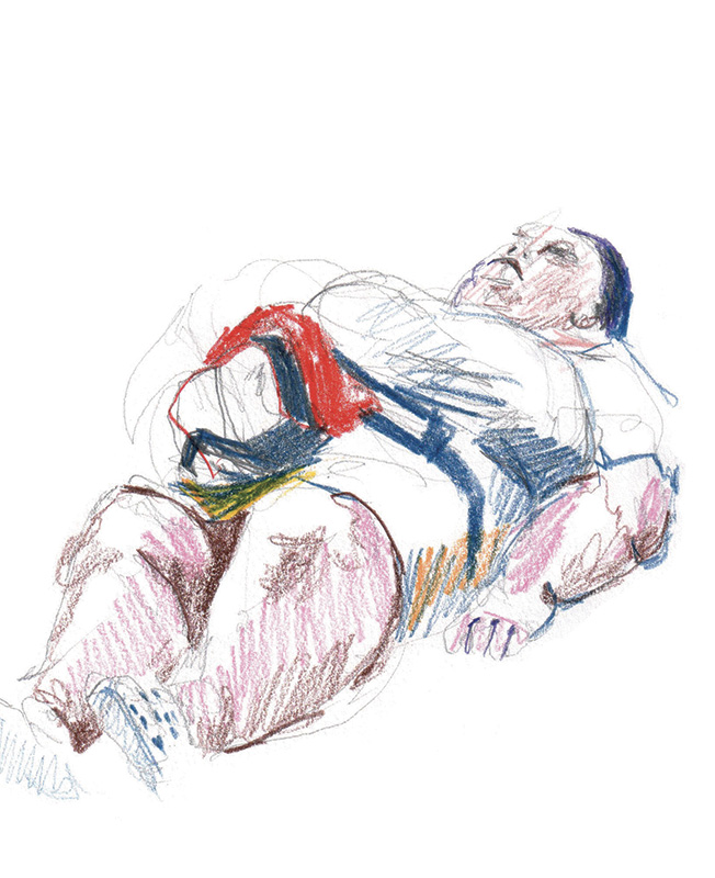 À n’importe quelle heure et pour parfois pas grand chose, ils arrivent dans ce service déjà engorgé. Je me demandais bien ce qui pouvait pousser quelqu’un à venir à 3h du matin pour un mal de ventre. Souvent, ils demandaient un Irm ou un scanner. Je dessinais et me rendais bien compte de la force du dessin. L’image en elle-même importait peu, ou plutôt était comme un effet secondaire. L’important c’est d’abord d’être représenté. Ces pauvres qui défilent, ceux que les médias, les politiques ou les bailleurs sociaux ont abandonné, c’est bien une image qu’ils attendent. Et ils resteront là toute la nuit s’il le faut, pour le temps d’un examen, accéder à un peu d’égalité face à la représentation.»