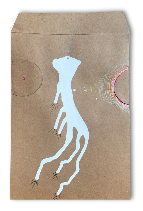 Typex et gouache sur enveloppe kraft 33,5 x 25,5 cm |