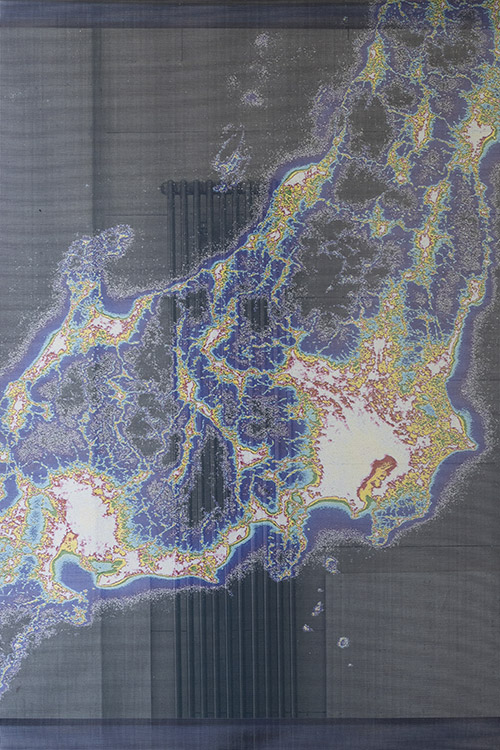 À partir de géovisualisations de la pollution lumineuse, je recrée des géographies quasi-insulaires des zones où la série de photographie a été prise : sud-est de la Chine, centre de Honshu au Japon, et Californie.