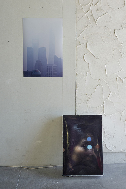 Il s’y dessine les contours d’une métropole-monde futuriste et archaïque où la modernité aurait incorporé la tradition, à l’image de ce squelette d’échafaudage soutenant une forme de pagode, où l’ombre portée fantomatique du toit du temple Asakusa est projetée sur le filet d’une nuit low tech en grisaille. Une nuit frémissant nous dit-il des « variations sensibles sur les cônes et les bâtonnets de ma rétine dont je tente de restituer la vibration dans le bruit numérique. »