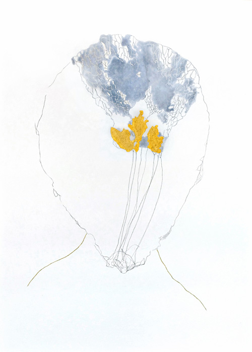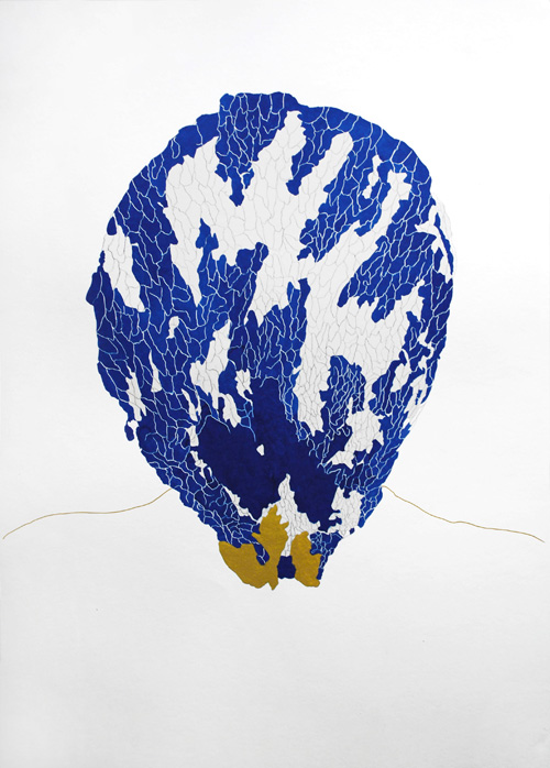 Bleu de méthylène, crayon et encre sur papier, 70 x 50 cm
