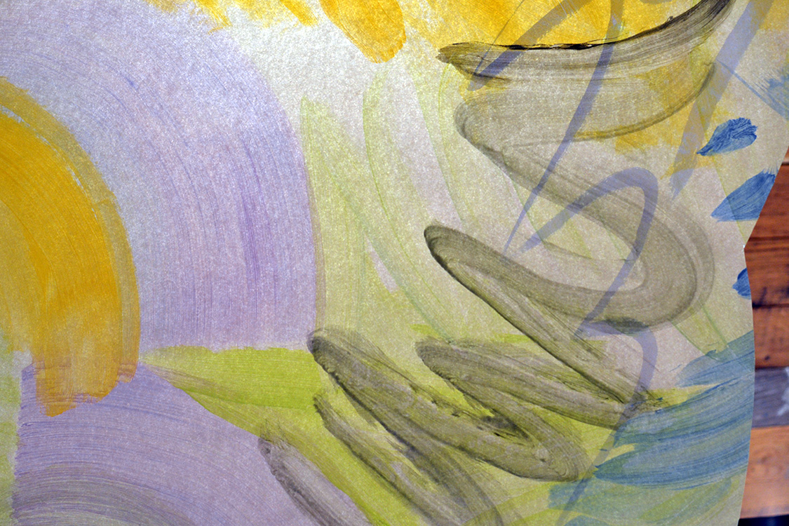 Détail, Battement, 2023 Vue d'installation Gouache et encre d'acrylique sur papier découpé, aimants In situ au Corps de Garde aux Ateliers de Coussay Photo avec l'aimable autorisation de l'artiste